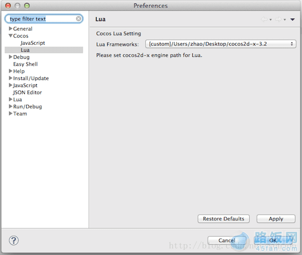 4、按照下图选择:Cocos Code IDE -Preferences。