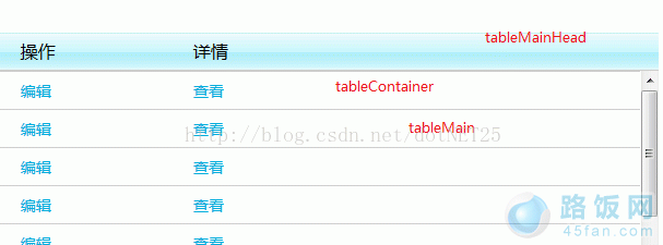 设置tableContainer(样式里写)、tableMain(脚本控制)的宽度等于tableMainHead的宽度