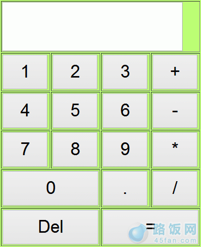<!--将按键内容以字符串形式存储在文字框中当按钮为“=”时,调用eval方法计算结果然后将结果输出文字框中-->