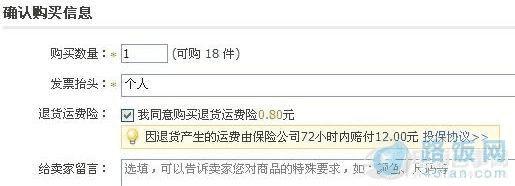 还有一点非常重要:现在淘宝购物可以购买运费保险,在你确认购物时要记得勾选这项服务,以免日后要退货时可省下这笔运费哦,虽然是小钱但也不要浪费了呵呵。
