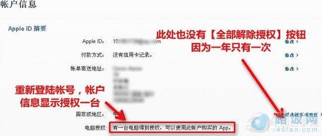 方法二.通过iTunes自行解除已经失效的授权。使用第二种方法需要注意:每个iTunes帐号每年只能使用该方法一次!如果今年你已经使用过了,请参考方法一。