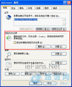 3.清除访问记录。在浏览网页后,想要清除历史记录,点击工具栏的“工具”按钮,选择“Internet选项”,点击浏览历史记录中下的“删除”按钮即可。当然,我们也可以在选项列表中,根据自己的需要进行选择,勾选需要删除的选项然后点击“删除”即可。