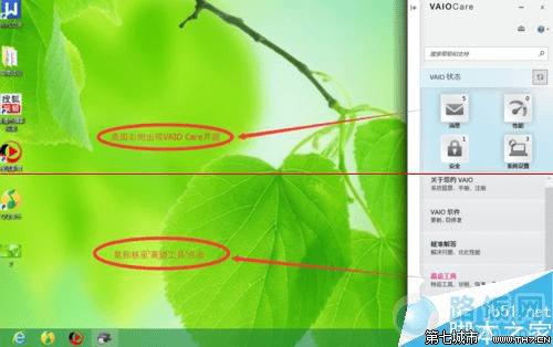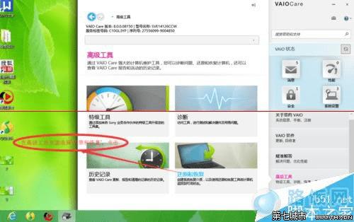 3、VAIO Care页面在桌面右侧出现,将鼠标移至‘高级工具’-点击。