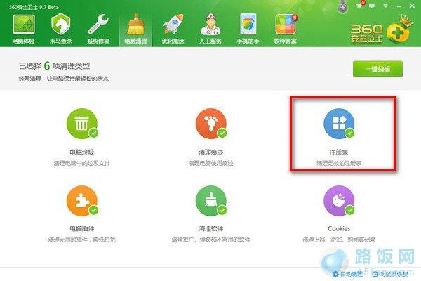 2、如果还是发现有残留文件,可以再使用360安全卫士的注册表清理功能,将UC浏览器的注册表清除