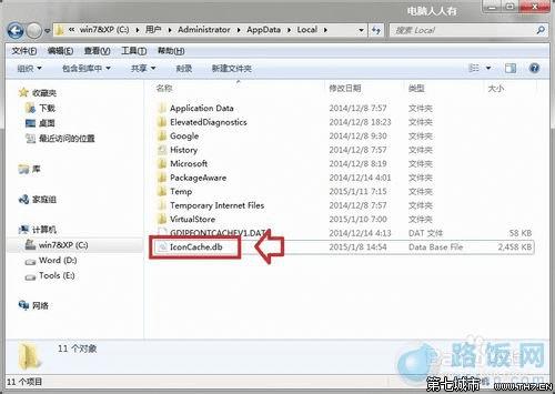 Local/IconCache.db ←删除此缓存,重启电脑即可重建正常的图标缓存。