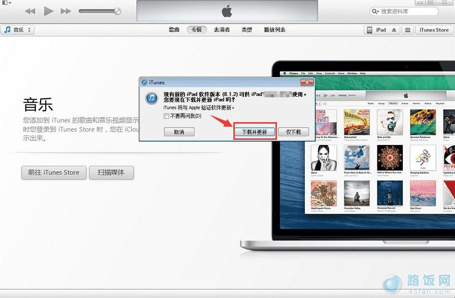 2.如果ipad或者iphone不是最新的系统在连接电脑后会有提示现有新软件版本可供更新,点下载并更新即可。更新过程会有点慢,需要耐心等待。