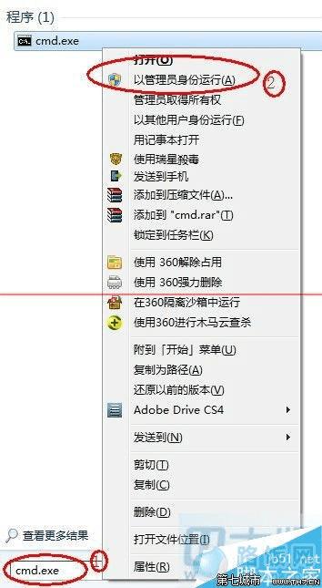 1、单击开始按钮,在开始搜索框中键入 cmd.exe。弹出对应的程序后,右击,选择“以管理员身份运行”。进入后,点击“是”