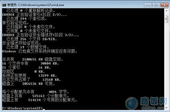 随后系统便会自动检查并修复出现问题的磁盘了,如图所示: