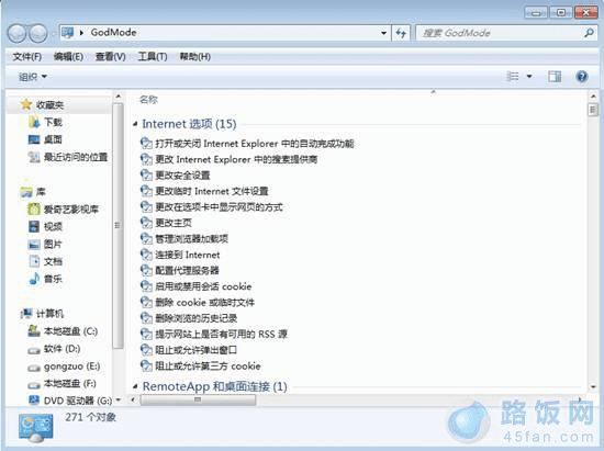 打开上帝模式,我们便可以看到很多windows的设置了,很方便查看设置,如图所示: