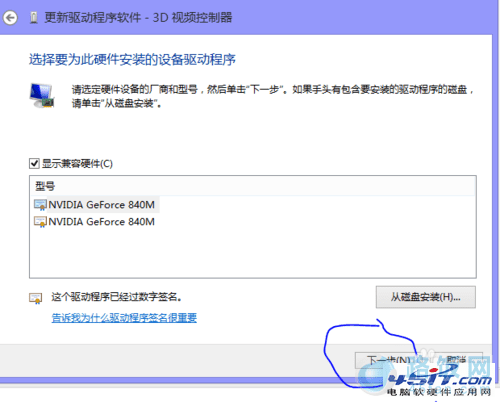3、下一界面我们选择从计算机的设备驱动程序列表中获取。