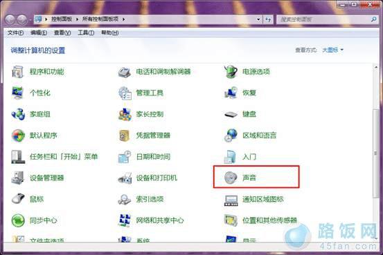 3.在打开的控制面板中,点击打开“声音”选项进入下一步操作。如下图所示