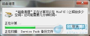 3.等到磁盘清理计算win7(C)上可以释放多少空间。如下图所示