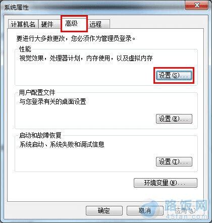 3.将上方的标签切换到“高级”,点击下方性能里的“设置按钮” 如下图所示