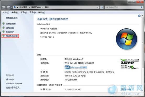 2.打开如下界面后,在左边栏目中,选择“高级系统设置” 如下图所示
