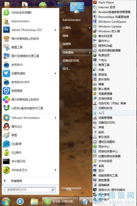 4.当保存完毕后我们在开始菜单中可看到原本的“控制面板”可以看到显示扩展内容,而不需要单独进行展开才可观看;如下图所示: