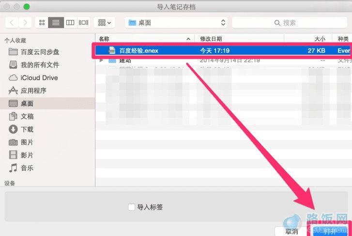 2、此时从弹出来的文件选择器中找到并点击选择需要导入的笔记文件,然后找到窗口中的“打开”按钮进入下一步。