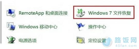 第一步,同时按下键盘上的WIN键和X键,系统会出现快捷工具栏目,用户在栏目中找到并点击控制面板选项,用户可以成功进入到控制面板窗口,在窗口中找到并点击Wind ows 7文件恢复图标。