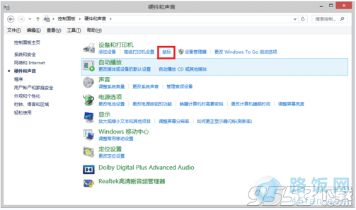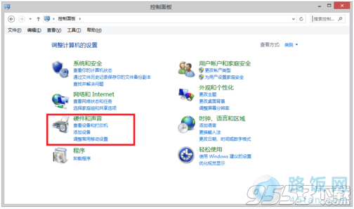 2、好多选项,不要惊慌,下面选择“硬件和声音”,敲击~