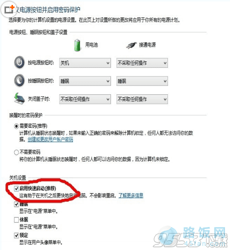 在下边关机选项去掉‘启用快速启动(推荐)’前面的勾。然后保存修改。