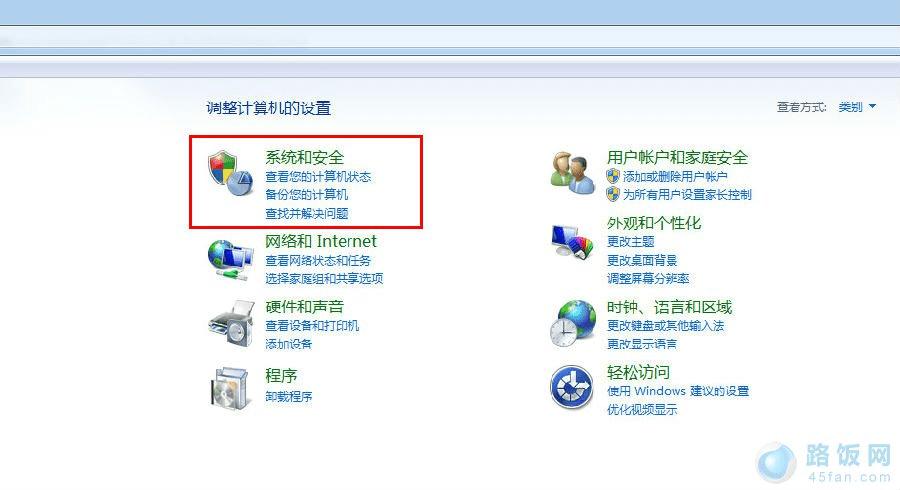 2、点击“系统和安全”
