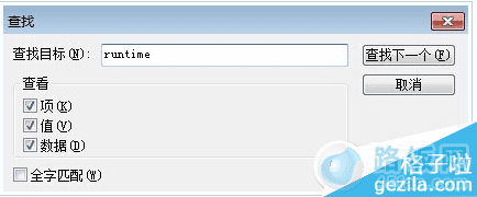 3、点击,出现一个查找框,输入runtime,如下图所示
