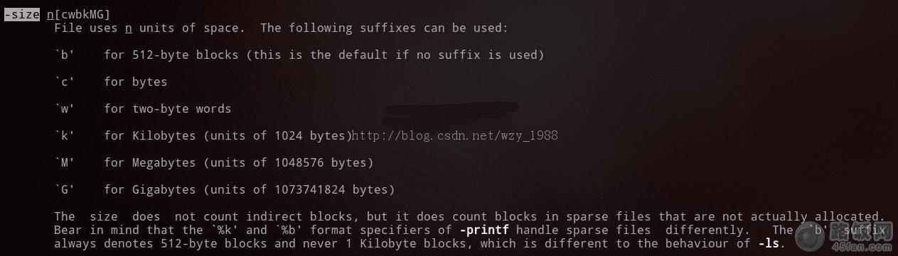 find命令的size参数可以按照文件大小进行查找,size的大小选项如下: