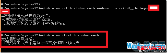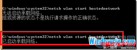 否则是看不到虚拟网卡的,没有添加虚拟网卡就无法启动承载网络。用命令操作的时候会提示如下的错误。
