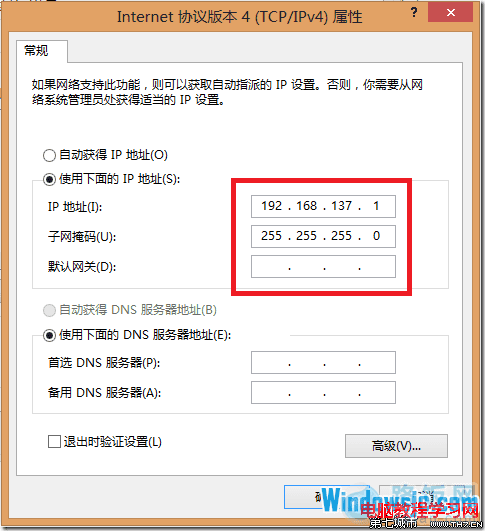 以下IP设置是系统自动完成的,不需要手动。如果它不能够自动设置IP地址,也可以手动设置。不过连接到此无线网络的设备也就没法自动获取IP地址了。同样需要手动填写。到时候网关得填写自己设置的那个IP地址。