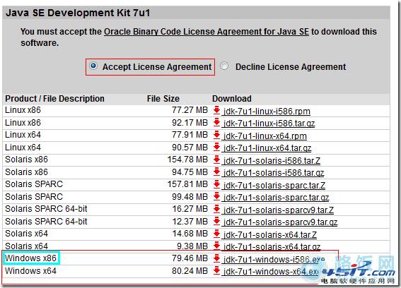 进入传送门之后得到上面的界面,这里有两个可选安装的,这里我推荐选择第一个。也就是:Java SE Development Kit(JDK 7)