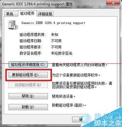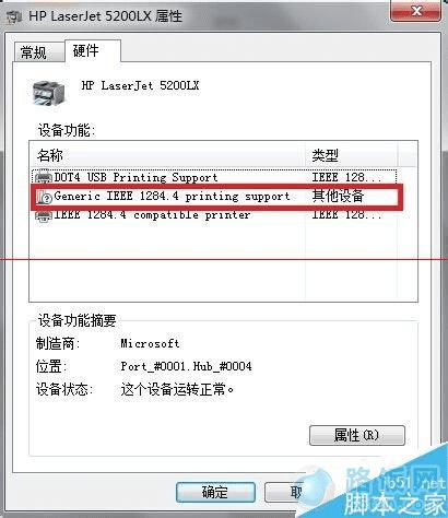 3、选择硬件,找到Generic IEEE1284.4 printing support选中,点击属性,如下图3