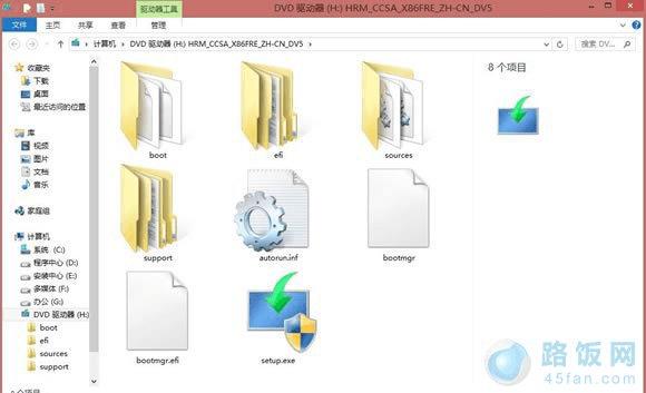 然后选到它右键打开方式选择Windows资源管理器就会弹出个页面这就是你Win8镜像文件的里面我们将它关闭。