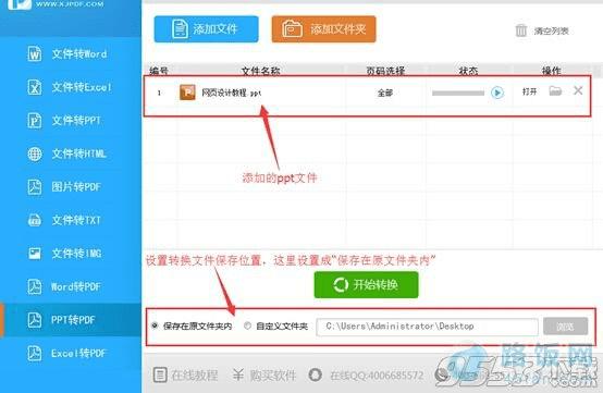 步骤3:文件添加成功,此时大家可以设置转换文件的存储位置,大家可以选择保存在原文件夹内,也可以选择自定义文件夹,选择自定义文件夹的用户可以通过“浏览”按钮设置文件保存位置。这里我们可以设置成“保存在原文件夹内”。