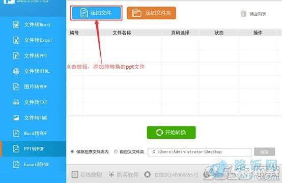 步骤2:点击软件中的“添加文件”按钮,将需要转换的ppt文件添加到软件中,用户也可以直接使用鼠标将ppt文件拖拽到软件上进行快速添加,并且可以同时添加多个文件。