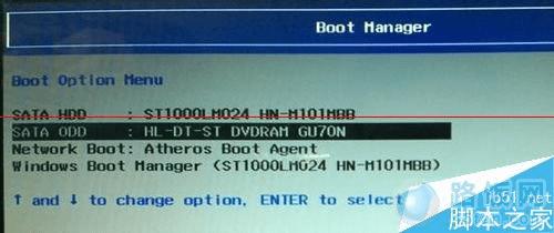 (4)在计算机重新启动至“Lenovo“LOGO画面时,并按下笔记本键盘上“F12”键或“Fn键+”F12“键进入笔记本的引导设置界面(若您的笔记本为Y400、Y500请您在计算机重新启动至“Lenovo“LOGO画面时按下笔记本的电源开关关闭计算机之后,按下”一键恢复按钮”开机,按下键盘上“↓”按键选择启动菜单中的“Boot Menu”项目之后按下“回车”键进入引导设置界面)。在此时将您笔记本的光驱托盘弹出,放入正版的Windows 7操作系统光盘之后将光驱托盘推回,同时选择该界面中的“SATA ODD“或“USB ODD”项目并按下”回车“键,以实现光驱启动。