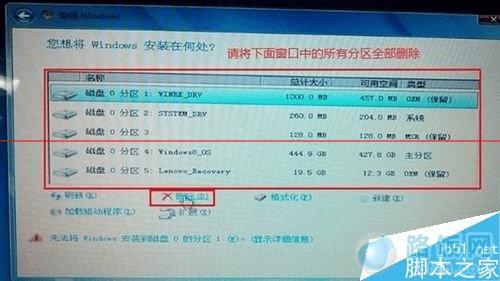(6)进入Windows 7系统分区画面后,请将其中的全部分区都删除,然后再重新创建新的分区即可。