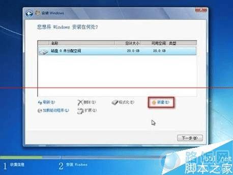 (5)在进入Windows 7系统安装画面后,按照如下步骤进入到Windows 7系统分区画面,具体步骤如下: