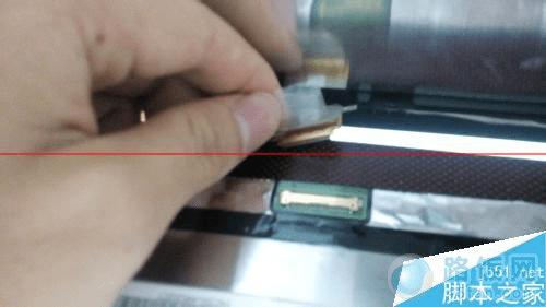 5、游匣屏幕固定比较简洁,(没有我网上看教程那些还有个屏框),所以可以直接到达核心步骤,拆屏线,揭起胶带。