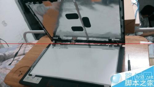 4、不急,然后稍微倾斜A面,让屏幕轻轻躺下,游匣屏幕固定比较简洁,(没有我网上看教程那些还有个屏框)。