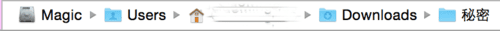 3、在上述代码的后面加上该文件夹的路径,但是注意,这里的路径是指你用户文件夹里面的路径,所以图中的“秘密”文件夹的路径是 Downloads/秘密