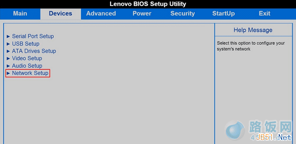 2、接着在“BIOS”面板中选定“Device”中的“Network Setup”选项;