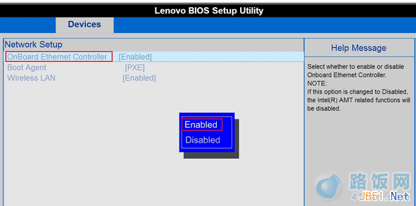 3、接着选定“Onboard Ethermet Controller ”后按下回车键,选定“Enabled”选项后按回车键;