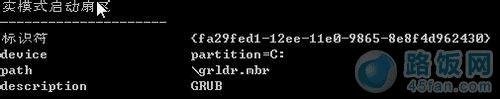 bcdedit /create /d "GRUB MENU" /application bootsector (注:建立一个名称为“GRUB MENU”的实模式启动项)