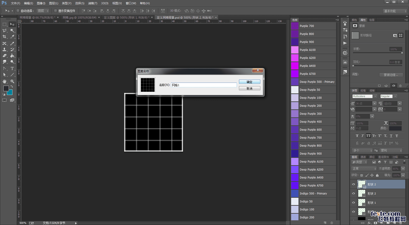 6,接下来我们把这个网格的四条边上的直线透明度降为76(数值自己定,我说了我是个强迫症),网格内部的直线透明度统一降为21,开始定义图案,编辑—定义图案,给图案随意取个名字你能分辨得出就好了,然后点击确定按钮。