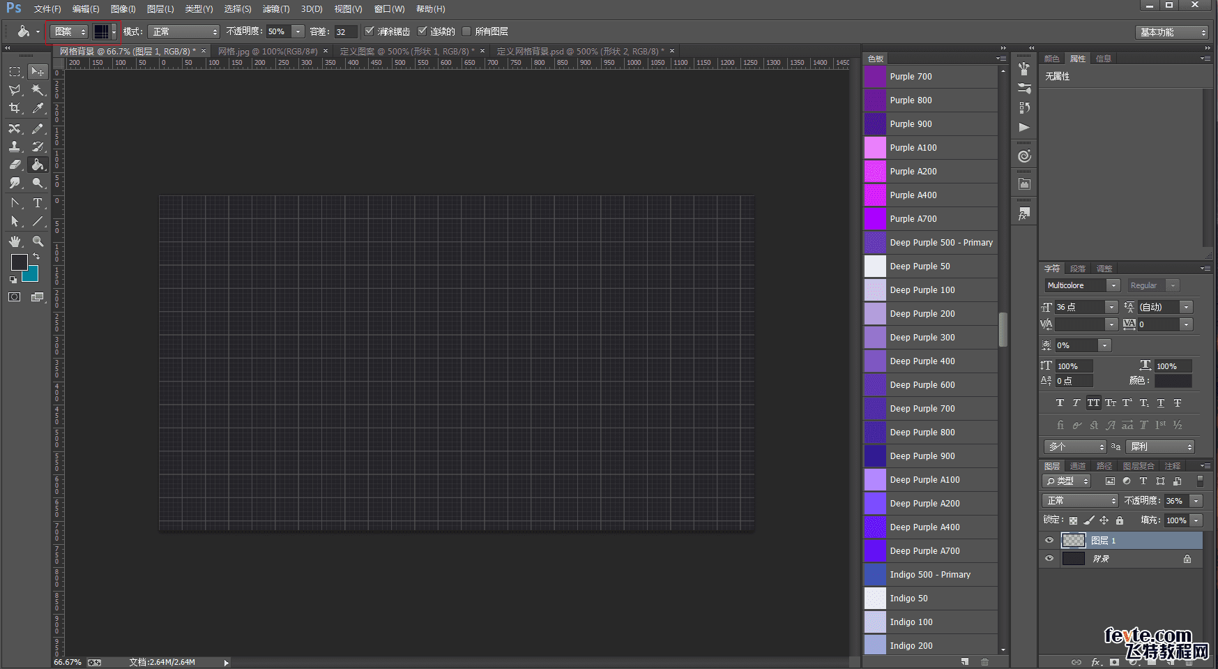 7,接下来回到第一次新建的画布开始用我们的自定义图案绘制网格吧,没错,接下来就是见证奇迹的时候了。选择油漆桶工具,