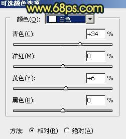4、创建可选颜色调整图层,对红、黄、白、中性、黑进行调整,参数设置如图14 - 18,效果如图19。这一步微调图片中的暖色,并给高光及暗部等增加青色。