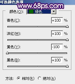 1、打开素材图片,创建可选颜色调整图层,对绿色进行调整,参数及效果如下图。这一步把图片中的绿色加深。