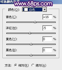 2、创建可选颜色调整图层,对黄、白、中性色进行调整,参数设置如图3 - 5,效果如图6。这一步把图片主色转为橙黄色。