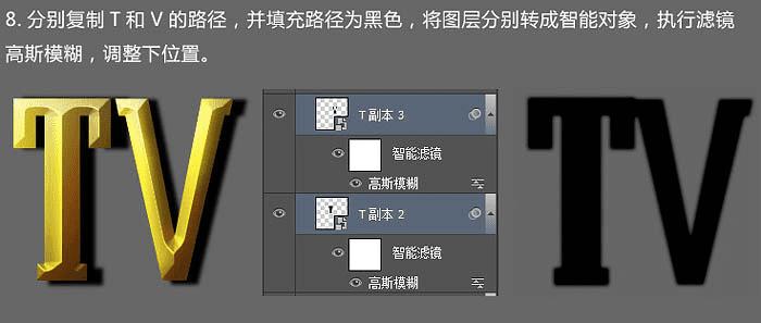 8、分别复制两个文字的路径,并填充路径为黑色,将图层分别转成智能对象,执行:滤镜 > 模糊 > 高斯模糊,调整下位置。