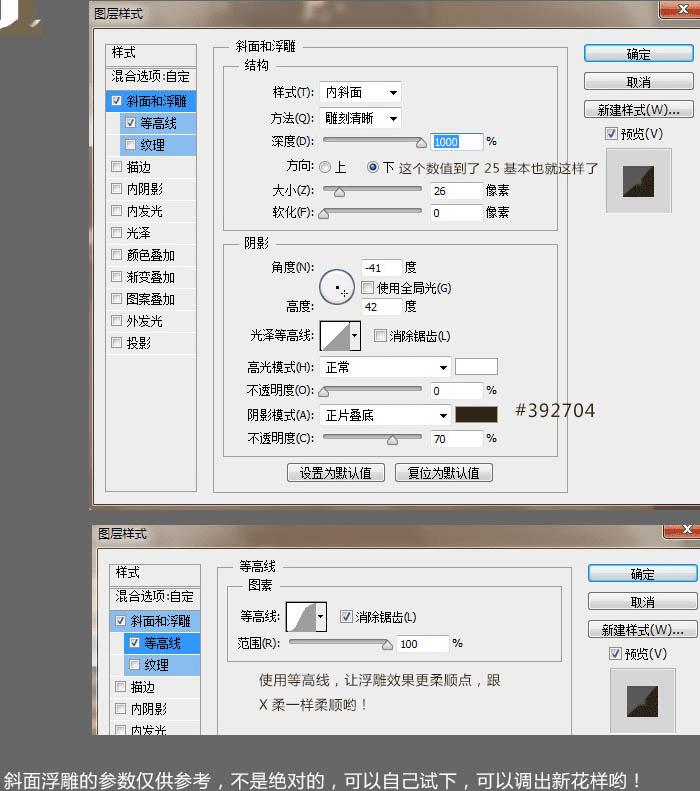 4、接下来,使用图层样式,给形状增加立体感。首选自然是斜面和浮雕。