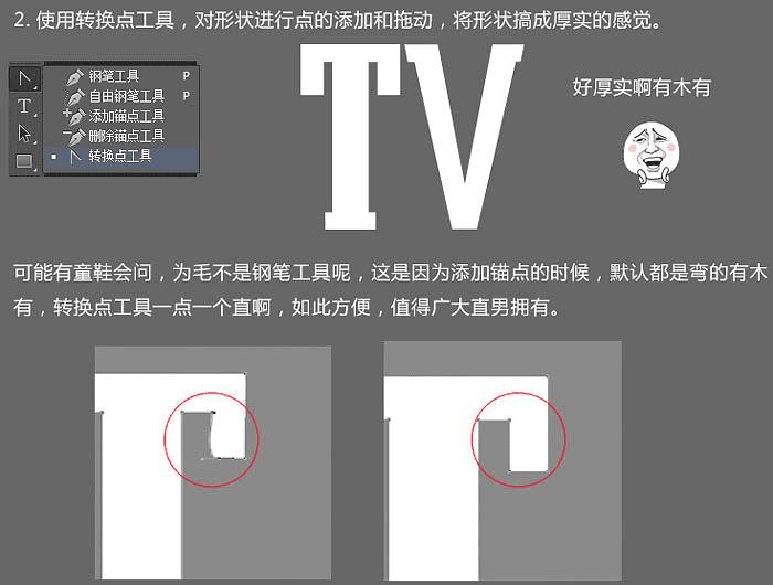 2、使用转换点工具,对形状进行点的添加和拖动,将形状做成厚实的感觉。